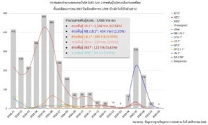 ขณะเดียวกัน กรมวิทยาศาสตร์การแพทย์ได้ถอดรหัสพันธุกรรมเชื้อโควิด 19 อย่างต่อเนื่อง โดยในช่วง 1 เมษายน – 24 กันยายน 2568 ได้ทำการถอดรหัสแล้ว 608 ตัวอย่าง พบว่าเป็น