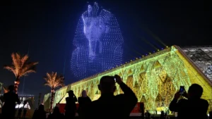 ในค่ำคืนวันเสาร์ ประธานาธิบดี อับเดล ฟัตตาห์ อัล-ซิซี และแขกผู้มีเกียรติได้รวมตัวกันหน้าจอขนาดยักษ์ มีการฉายภาพสถานที่สำคัญทางวัฒนธรรม พร้อมการแสดงของนักเต้นที่แต่งกายสไตล์ฟาโรห์ถือคทาและลูกแก้วเรืองแสง และนักร้องเพลงป๊อปชื่อดังของอียิปต์