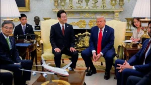 ประธานาธิบดีอี แจ-มยอง กล่าวระหว่างการแถลงข่าวครบรอบ 100 วันในการดำรงตำแหน่งว่า “สถานการณ์ที่เกิดขึ้นเป็นเรื่องที่น่าประหลาดใจอย่างยิ่ง” พร้อมชี้ให้เห็นว่าการส่งแรงงานชาวเกาหลีใต้เข้าไปช่วยตั้งโรงงานในต่างประเทศถือเป็นเรื่องปกติ หากการดำเนินการดังกล่าวไม่ได้รับอนุญาตอีกต่อไป การตั้งโรงงานในสหรัฐฯ ก็จะกลายเป็นเรื่องยากขึ้น และอาจทำให้บริษัทต่างๆ ตั้งคำถามว่าคุ้มค่าที่จะลงทุนหรือไม่