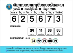 รายงานผลหวยลาว 30 มิถุนายน 2568 (30/06/68) ผลหวยลาว 6 ตัวออกรางวัลดังนี้