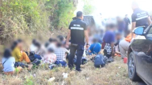 กระบะขบวนการขนแรงงานเถื่อน ซิ่งหนีการจับกุม เสียหลักพลิกคว่ำ เจ็บเกลื่อนถนน ประมาณ 20 ราย พบอัดกันมาเต็มคันรถ เกือบ 40 คน เจ้าหน้าที่เร่งตามตัวคนขับ ขึ้นรถอีกคันหลบหนีไปวันนี้ 26 ก.พ.69 ผู้สื่อข่าวรายงานว่า พันตำรวจเอกภคพล สุชล ผกก.2 บก.ทล. พันตำรวจตรีกฤษฎา พ่วงปาน สารวัตรสถานีตำรวจทางหลวง 6 กองกำกับการ 2 กองบังคับการตำรวจทางหลวง (ส.ทล.6 กก.2 บก.ทล.) สั่งการให้ ร้อยตำรวจโทกุศล ยะฝั้น รอง สว.(ป.) ร้อยตำรวจตรีพีรธรรม หนูนุรัตน์ รอง สว.(ป.) ด.ต.ปกรณ์ สิทธิศักดิ์ และ ด.ต.นพดล สีนวล ผบ.หมู่ ส.ทล.6 กก.2 บก.ทล. นำรถวิทยุตรวจการณ์ 2 คัน ออกลาดตระเวนตรวจตราเส้นทางในพื้นที่รับผิดชอบ เพื่อป้องกันปราบปรามการกระทำผิดกฎหมายทุกชนิดโดยเฉพาะขบวนการลักลอบขนแรงงานเข้ามาในราชอาณาจักรไทยโดยผิดกฎหมาย